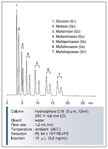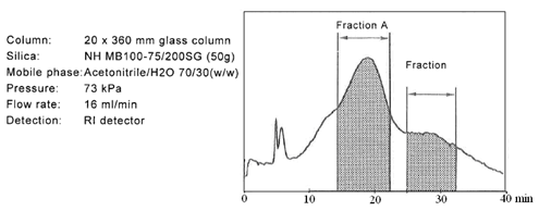 迄今為止,大多數(shù)糖類的分離介質(zhì)僅僅局限在分析級別,但是富士硅膠研發(fā)出用于制備色譜的新的氨基硅膠。當(dāng)使用高水相為流動相時,一般的氨基填料會暴露出很多問題。氨基硅膠的pH值很高,一般pH為9.0,在這樣高的pH條件下,目標(biāo)化合物一般都會變性,并且會毀壞硅膠基質(zhì)的表面。考慮到這些問題,富士公司研發(fā)出新的氨基硅膠填料,稱之為NH SG硅膠。NH SG硅膠可以最小化甚至是避免上述問題,并且對糖類化合物進(jìn)行更好的分離。