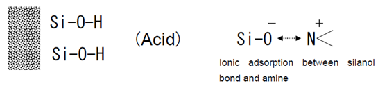 硅膠表面的硅醇基是有極性的,帶負(fù)電,酸性,與堿性化合物存在離子間的強吸附作用
