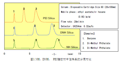 PEI是在球形硅膠表面鍵合大分子的氨基多聚物。富士的NH和DNH硅膠在分析和工業領域有著廣泛的應用,主要用于分離堿性化合物,而這些堿性化合物在裸硅膠上會吸附的很嚴重。