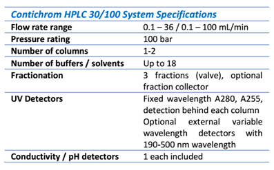 EcoPrime Twin HPLC :EcoPrime Twin HPLC為生產(chǎn)型連續(xù)流層析系統(tǒng),可在GMP條件下運行MCSGP功能,滿足MCSGP工藝的有效線性放大。