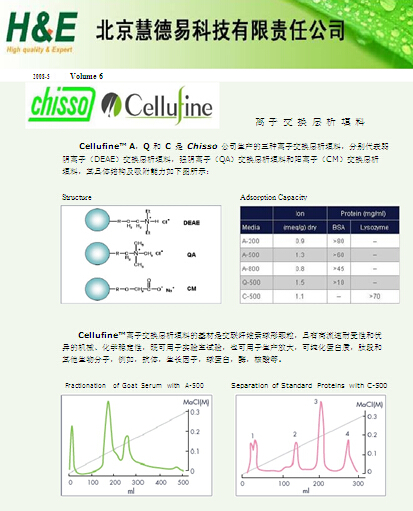 This introduction: Cellufine? A,Q 和 C 是 Chisso 公司生產的三種離子交換層析填料,分別代表弱陰離子(DEAE)交換層析填料,強陰離子(QA)交換層析填料和陽離子(CM)交換層析填料